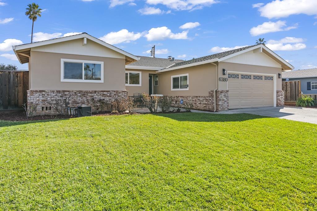 Welcome to 6380 Vegas Drive, a beautifully refreshed single-story home in the highly desirable Almaden Valley neighborhood of San Jose. Offering 4 bedrooms, 2 bathrooms, and approximately 1,661 square feet of living space on an ~6,000 square foot lot, this residence blends comfort, functionality, and timeless appeal. Step inside to a well-designed floor plan enhanced by fresh interior and exterior paint, new carpet in the living and family rooms, and stylish new linoleum flooring in the kitchen. The bedrooms feature hardwood flooring, and updated light fixtures throughout the home provide a bright, modern touch. The kitchen is equipped with stainless steel appliances and flows seamlessly into the inviting family room, where a classic wood-burning brick fireplace creates a welcoming focal point perfect for relaxing evenings or gathering with guests. Additional highlights include an attached two-car garage and a spacious backyard with ample room for entertaining. Located within the San Jose Unified School District and served by highly regarded Simonds Elementary, Bret Harte Middle, and Leland High School, this home presents an exceptional opportunity to own in one of Almaden Valley's most sought-after communities, known for its charm, convenience, and strong neighborhood appeal.