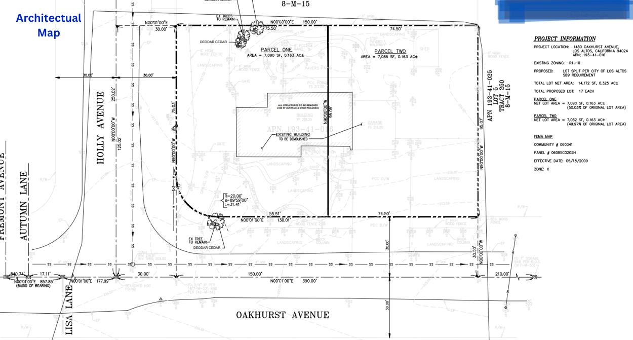 Rare, shovel-ready SB9 opportunity in one of Los Altos most desirable residential neighborhoods. Ideally situated on a quiet, tree-lined street surrounded by newer homes, this property offers the perfect balance of privacy, neighborhood charm, and everyday convenience. Enjoy close proximity to top-rated schools, vibrant downtown Los Altos, parks and recreation, and major commute routes to leading tech campuses. This approved SB9 project allows for a two-parcel development with substantial build potential on each lot an exceptional opportunity for builders, investors, or end users seeking multi-home flexibility. Approved Parcel Configuration: Parcel 1: ±7,090 sf lot approved for a 4,288 sf home Parcel 2: ±7,085 sf lot approved for a 4,407 sf home. Plans are approved and the project is ready for building permit applications, significantly reducing entitlement risk and accelerating timeline to construction.